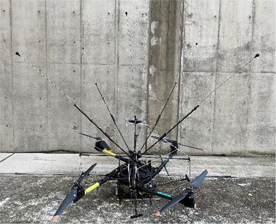 NTT developed a lightning protection cage design that prevents malfunction or damage even if the drone is directly struck by lightning. This cage, which can be mounted on commercially available drones, is made of conductive metal and functions as a shield. It redirects the high current from the lightning strike away from the drone's internal components, preventing it from flowing through the drone itself. Additionally, the cage is designed to distribute the lightning current radially, which cancels out the strong magnetic fields generated by the current and minimizes electromagnetic interference with the drone (Figure 5).