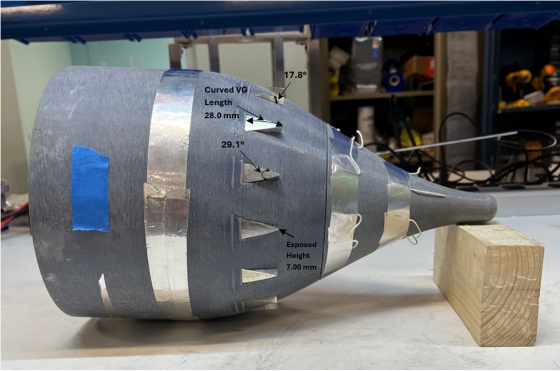 The team first established parametric trends through extensive CFD analysis and then tested multiple hulls through rapid prototyping to validate the results experimentally. Scale models of an axisymmetric hull with a bare tail, a tail with delta wing vortex generators, and a tail with wedge vortex generators were produced and tested. The team identified wedge-like vortex generators as the key shape that could achieve this level of drag reduction.