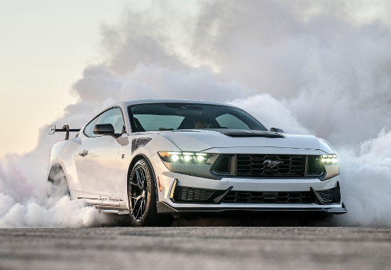 The horsepower of the factory V8 is cranked up from 493 to 838 in the SUPER VENOM with increased torque to 650 lb-ft at 4,900 rpm. Ford's stock Dark Horse can hit 60 mph from stationary in 3.7 sec, as a 10-speed automatic. Hennessey's uprated SUPER VENOM Mustang can do it in just 3.2 sec. The standard Dark Horse covers the 1/4 mile in 12 sec at 118.4 mph. Hennessey betters this benchmark too, with the automatic SUPER VENOM Mustang covering the same distance in 10.9 sec at 133 mph.