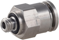 You must know the specifications of the threaded port you will be installing the fitting into so that you can select the appropriate fitting. Miniature fittings come in many thread sizes. Some of the most common are: M3 x 0.5, M5 x 0.8, M6 x 1, and M8 x 1.25 in metric sizes and 10-32 UNF, 1/4-28 UNF, and 5/16-24 UNF in unified screw thread sizes. These are straight threads (not tapered like pipe threads). A seal, usually an o-ring or gasket, is required to prevent leakage from straight threaded fittings.