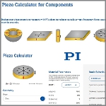 The PI Piezo Component/ Transducer Calculator is an online engineering tool designed to help users estimate key performance parameters of piezoelectric ceramic products quickly, for both static and resonant behaviors, based on user-defined inputs. Users can model piezo transducer behavior, evaluate electrical characteristics, analyze resonance and dynamics, and optimize designs. Includes material and geometry inputs.